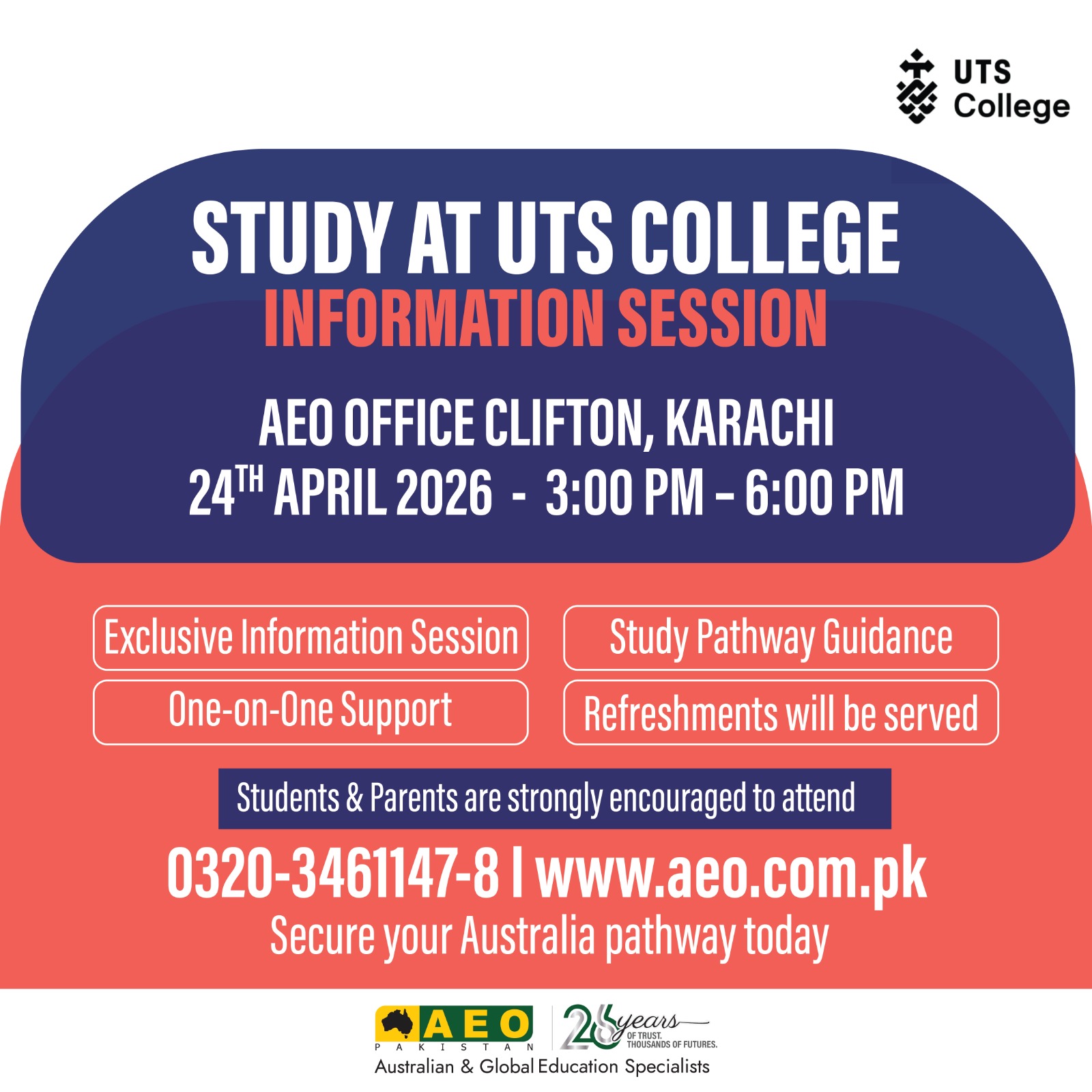 Physical Study at UTS College Information Session on 04th May Limited seats available — secure your spot today! Event Details...