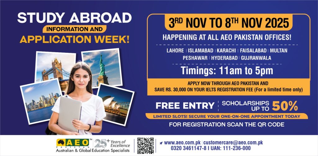 “AEO Pakistan’s mission is to turn study-abroad ambitions into actionable plans,” said a spokesperson for the organisation. “This week is the perfect opportunity to speak face-to-face with our team, ask the tough questions and walk out with clarity on next steps.”